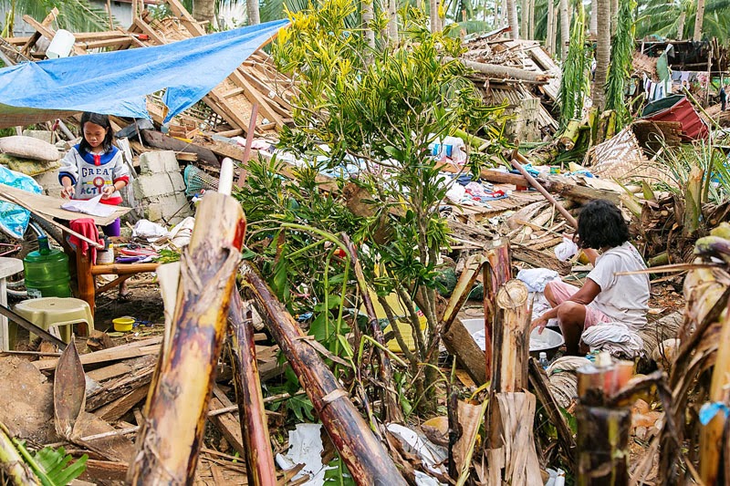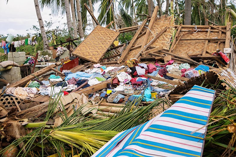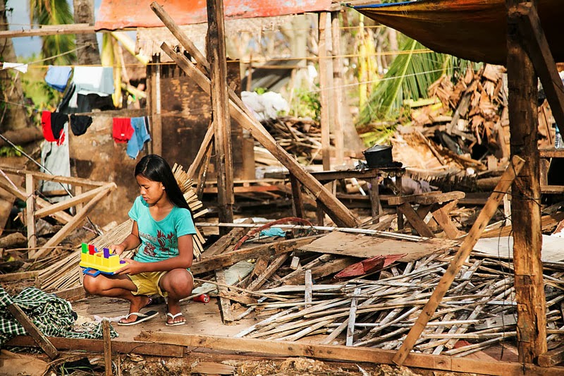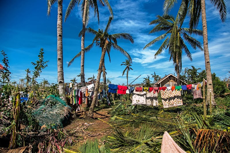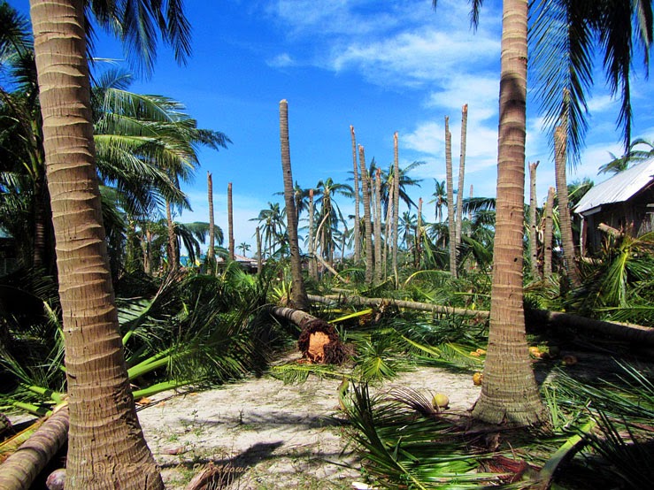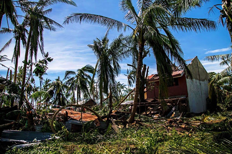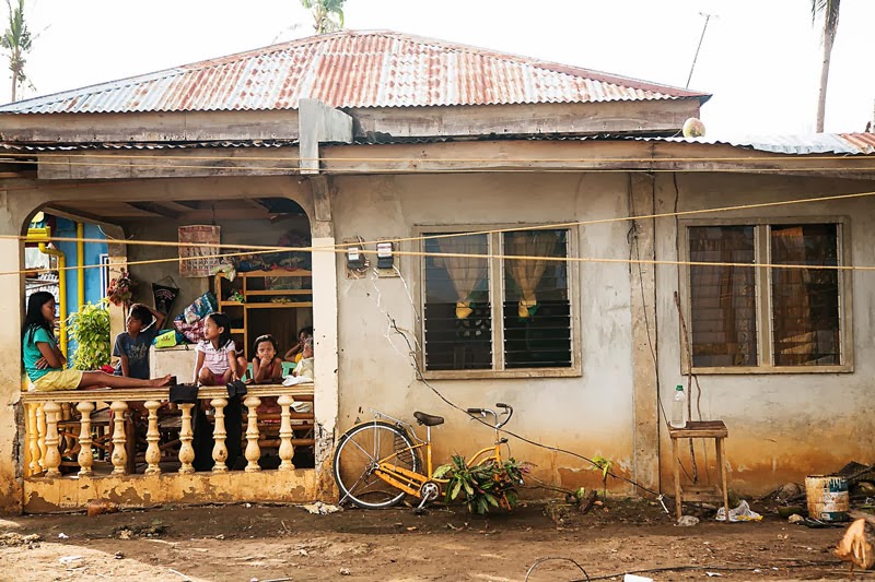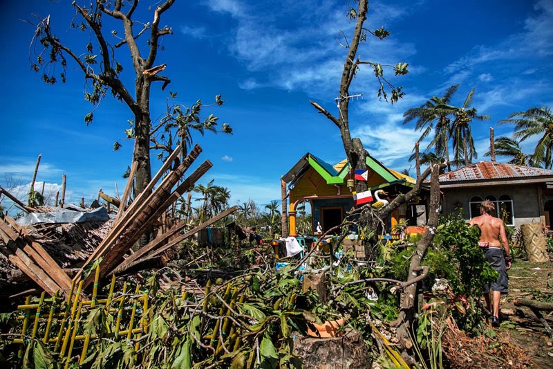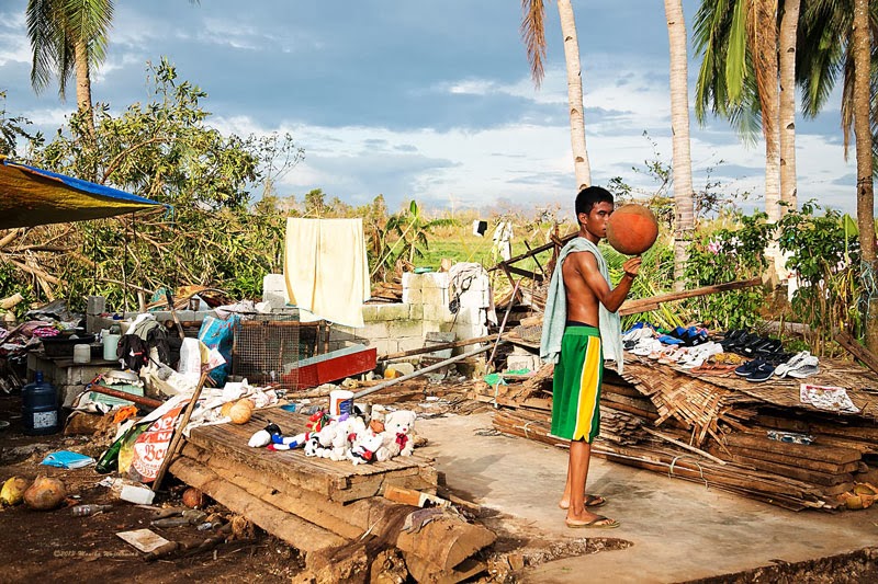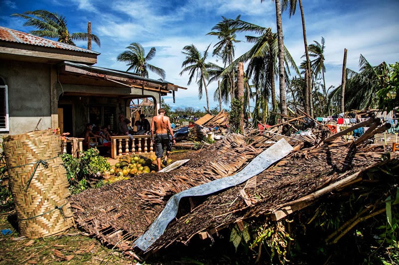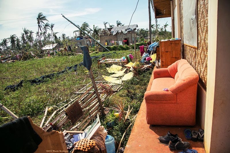 Zdjęcia poniżej to potajfunowy obraz Tingtingon, części Marikabanu, filipińskiej wsi na wyspie Bantayan. Dzięki naszym gospodarzom, czyli rodzinie Ilustrisimo, Marych i ja jesteśmy tu traktowani jak dobrzy znajomi. Każdy, kto miał przyjemność spędzić tu trochę czasu z pewnością potwierdzi, że miejsce jest nad wyraz urocze. Póki co, ten urok jest mocno nadgryziony zębem tajfunu. Całe skupiska bambusowych domostw zamieniły się w poYolandowe rumowisko ścian, dachów i podłóg poplątanych fragmentami zniszczonych instalacji. Niewiarygodne, że mimo tragedii i chaosu dookoła, ludzie pozostają nastawieni pozytywnie, otwarci i nadal uśmiechnięci. Trzymajcie za nich kciuki i wspierajcie w trudzie odbudowy tego fantastycznego miejsca. Praca w toku i wygląda to coraz lepiej.