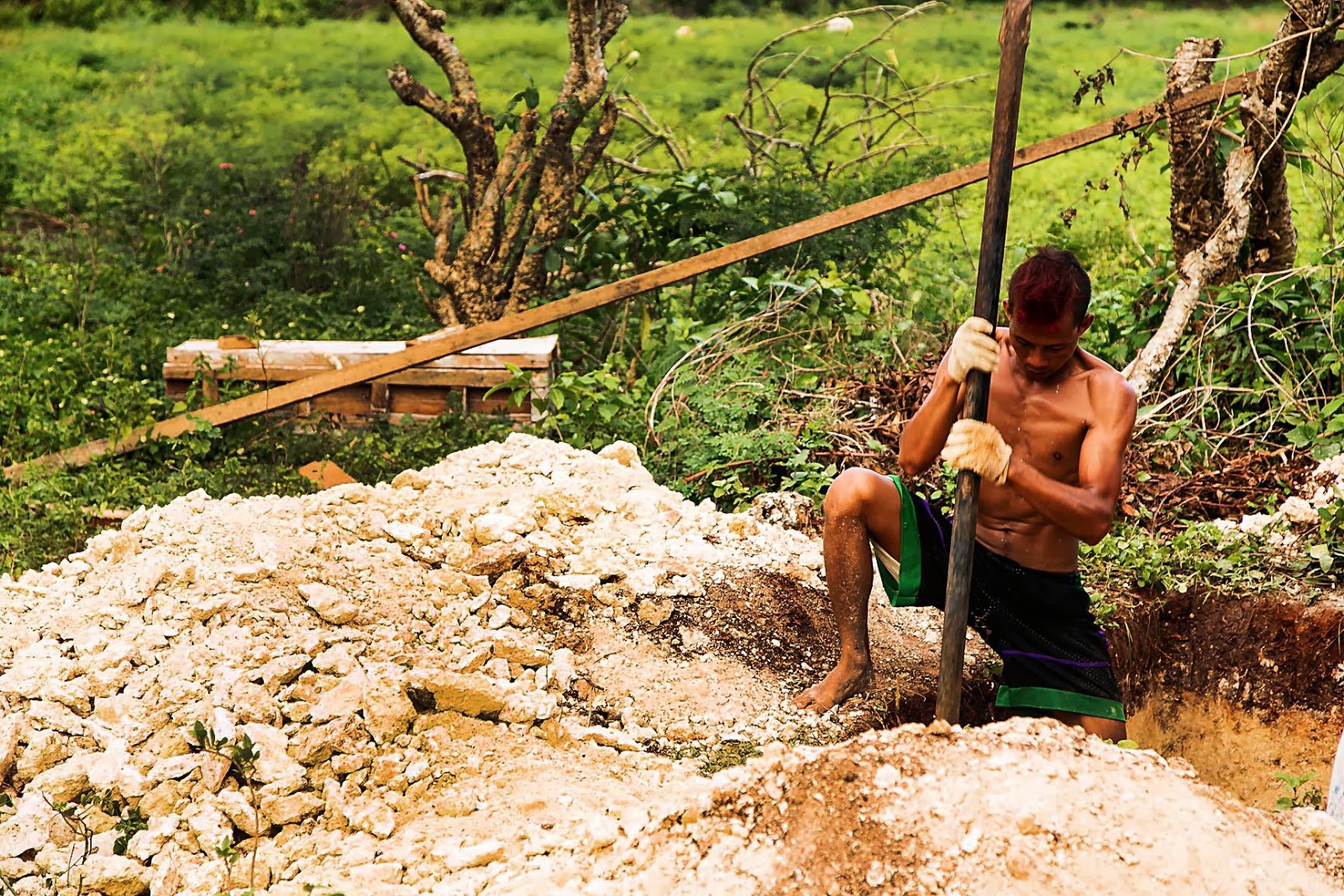 Ale wracając do szamba, to aż mi momentami żal chłopaka, bo morduje się już z drugi tydzień przy użyciu prostych narzędzi (młotek i brecha, masakra tak przez miesiąc, albo dwa dzień w dzień napierdalać po 8 godzin brechą w skałę) i tak może wykuł dół 2×2 metry do głębokości z pół metra na oko, sporo jeszcze przed nim ciężkiej pracy. Ale chłopaki zasadniczo się mega cieszą i rządzą, bo są przy kasie (praca na Filipinach, zwłaszcza na wsi to ciężki temat, a w Marikabanie mają teraz przy domkach stały dochód). Co sobotę jest wypłata, a co za tym idzie impreza, nawet ostatnio Manoy łyknął chyba trochę za dużo, bo znalazłem go przed furtką w stanie małej używalności, ale spoko, zaprowadziłem do chaty, znaczy nie do samej chaty, bo tak z 5 metrów przed przejęli go mama z tatą, trochę mi było głupio, ale z drugiej strony wiedzieli, ze nie imprezował z nami, tylko z kumplami po wypłacie na budowie, więc luz, nie było pretensji. Taki jest przecież urok młodości i prawo młodzieży w najróżniejszych zakątkach świata.